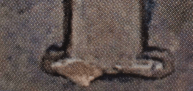 Parikka = Kruunun halkiossa uritus, uran päissä terävät nauhat, oikealla puolella kaksi, kaarevat nauhat.